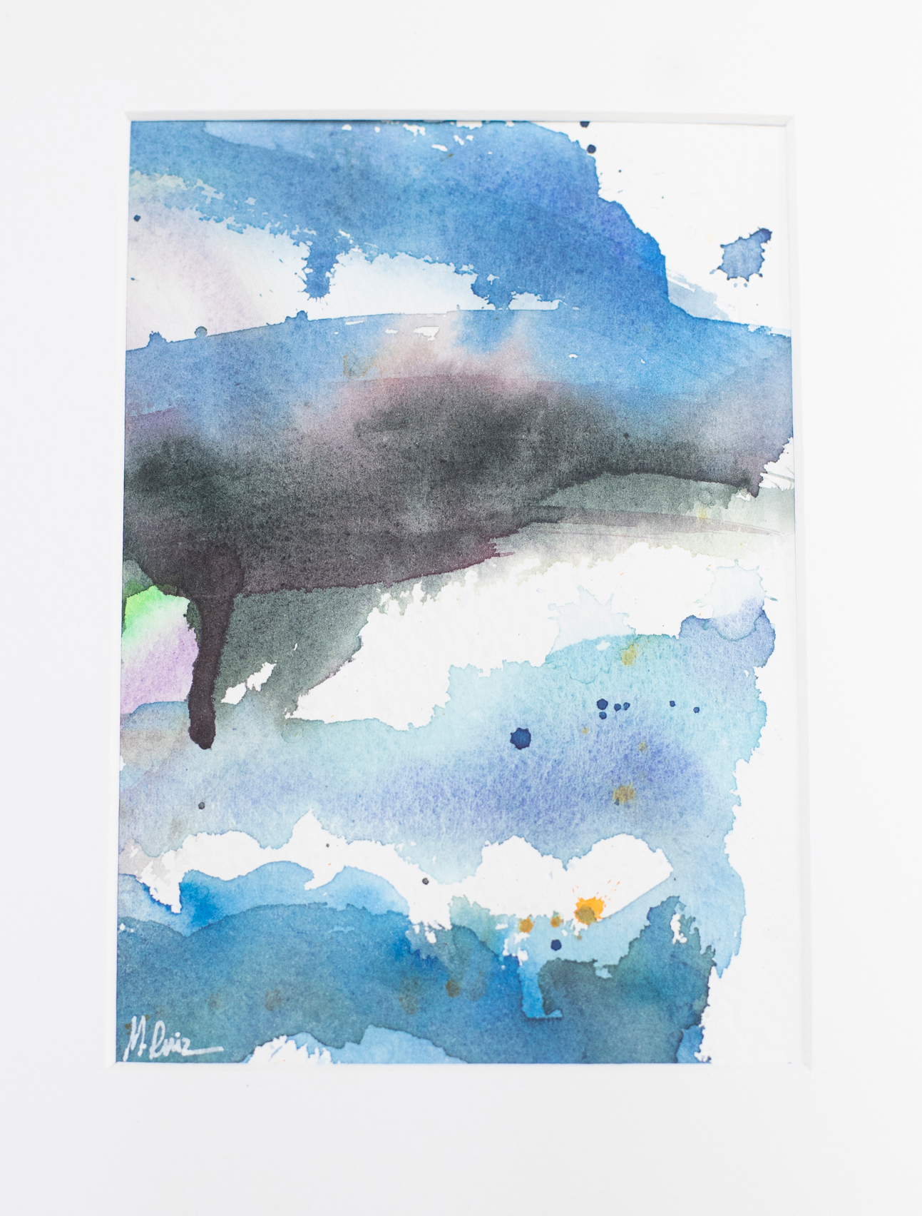 Cuadro pintado en acuarela llamado ‘Acróbatas de azul’. Medidas 30 x 30 cms.