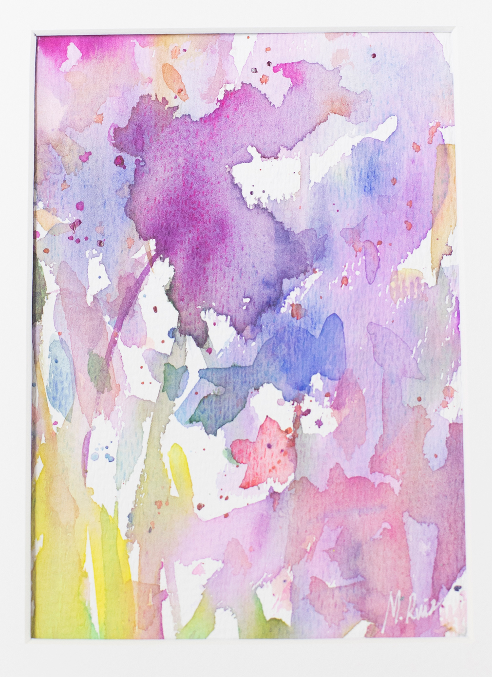Este cuadro pintado con acuarela se llama ‘Amanecer entre pétalos’ y es parte de un tríptico. Las medidas son de 30 x 21 cms.
