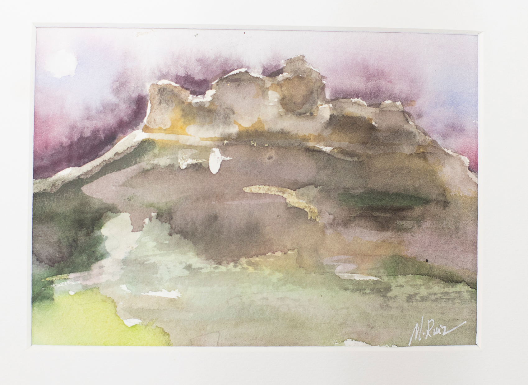 Este cuadro pintado con acuarela se llama ‘Legado aragonés’. Forma parte de un cuadro de una serie de 2 cuadros. Las medidas son de 20 x 30 cms.
