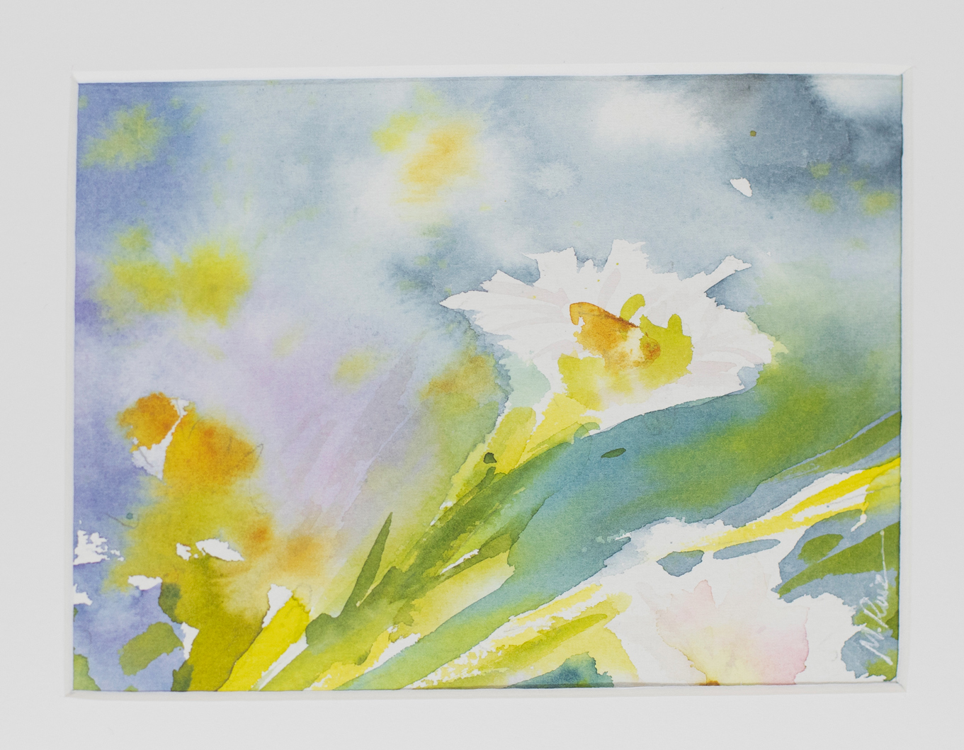 Este cuadro pintado con acuarela se llama ‘Margaritas a la entrada de la huerta’ y es parte de un tríptico. Las medidas son de 30 x 20 cms.