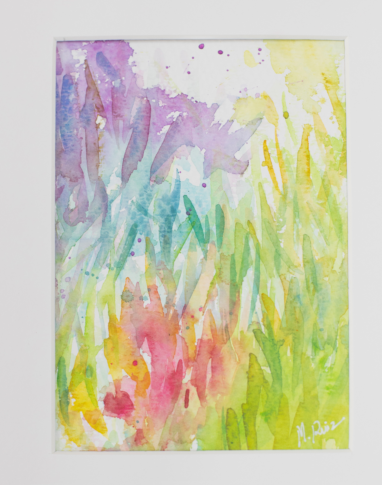 Este cuadro pintado con acuarela se llama ‘Un paseo por el jardín’. Forma parte de un tríptico. Las medidas son de 20 x 25 cms.